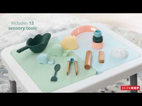 Developed in collaboration with a sensory play expert, SkipHop's 24-piece sensory table for toddlers set offers limitless ways to explore, learn, create and play. Designed to grow with your child, early sensory exploration begins with floor play and the included tools (wooden tongs & rollers, animal scoops, shovel rake & more) they can be used in so many ways!