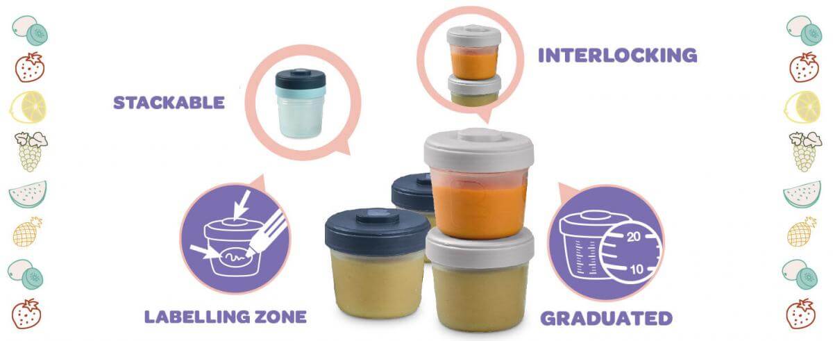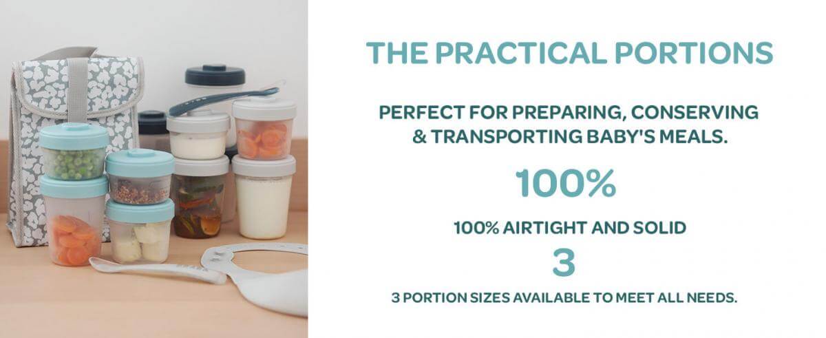 The great Béaba clip part container scores airtight and leakproof. The combination of different sizes and the correct spoon makes it easy for you to start your first solid meal.