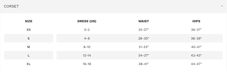 - 6 rows of hook-and-eye clasps, allowing for 3" of adjustability