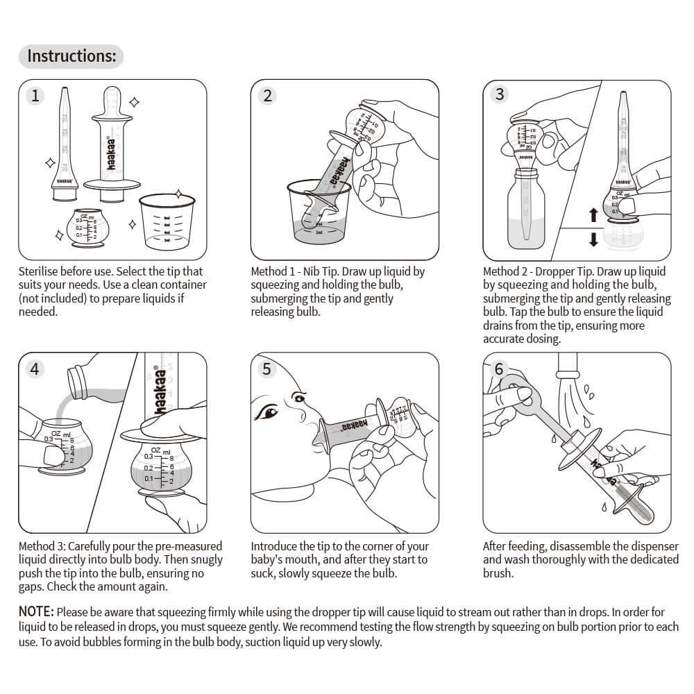 Administer medications and feed liquids to your little one safely and easily with Haakaa's Squeezie DOSE Silicone Dispenser! The unique silicone bulb design is an excellent alternative to traditional hard plastic syringes. It allows you to use it one-handed, giving you effortless control over the flow rate with a simple squeeze.