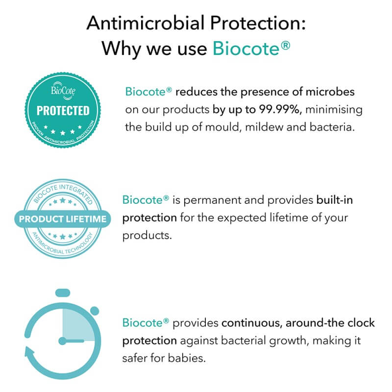 - Contains BioCote ® Antimicrobial Protection to keeping the teether fresher and cleaner for longer
