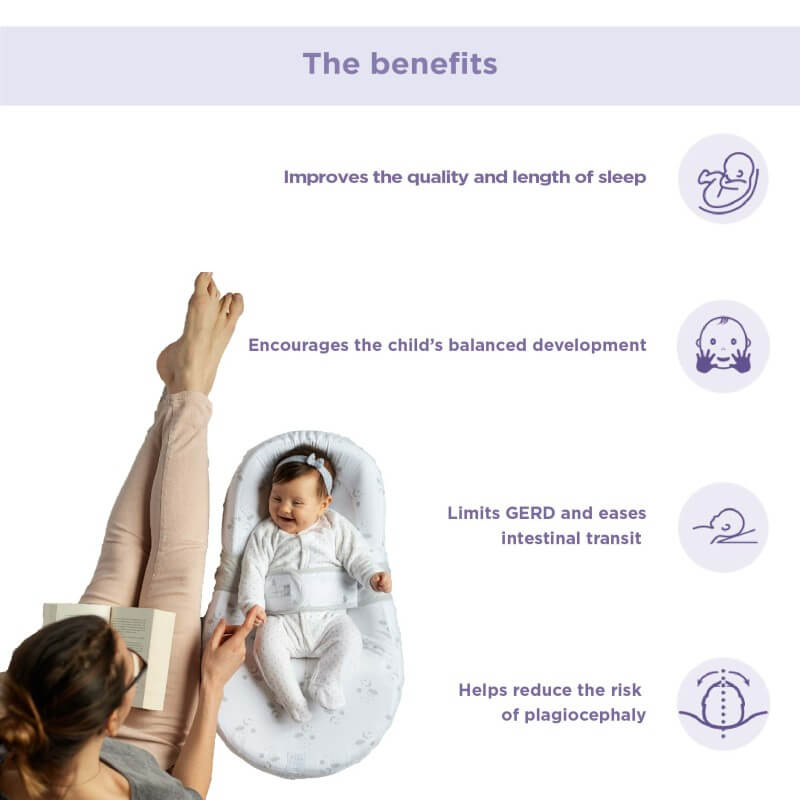 - Ergonomic cocoon: Helps the newborn adapt to life after birth with a semi-fetal position, it's snug, cocooning sides create a reassuring space that mimics the sensations of the womb, helping baby feel calm and fall asleep more easily